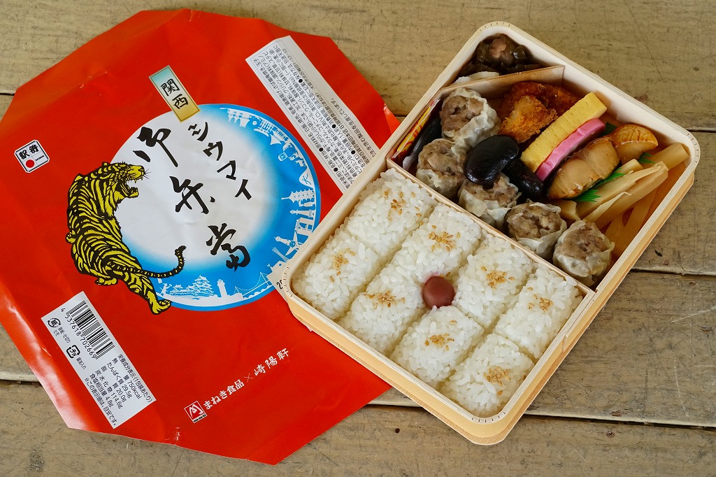 兵庫県のJR山陽本線姫路駅などで駅弁を販売するまねき食品は、2021(令和3)年11月26日(金)に新作の駅弁「関西シウマイ弁当」(960円)を発売。神奈川県のJR東海道本線横浜駅などで駅弁を販売する崎陽軒とタイアップ、同社の看板商品「シウマイ弁当」の関西版として、経木折の容器、掛け紙と絵柄、内容やその見栄えや詰め方をシウマイ弁当と酷似させ、一方で絵柄や食材に関西らしさを表現させた。姫路駅の中央売店(新幹線改札手前)でのみ数量限定販売。