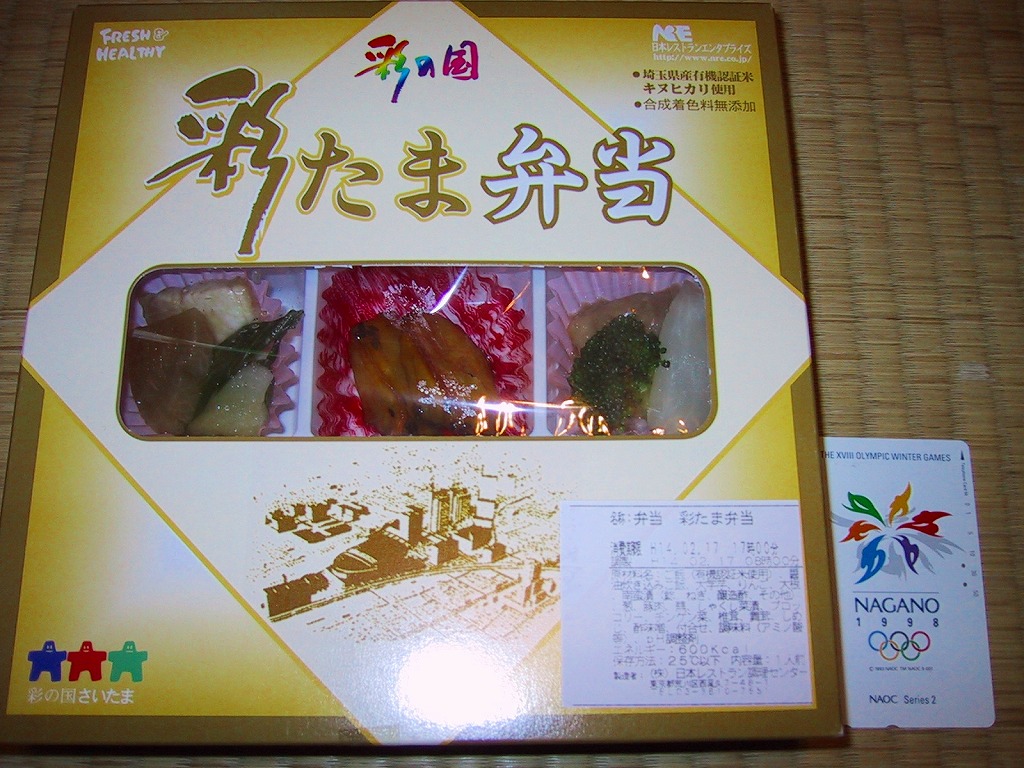 埼玉県のJR東北本線大宮駅でも駅弁を販売する日本レストランエンタプライズは、2001(平成13)年4月21日(土)に新作の駅弁「彩たま弁当」(1,200円)を発売。埼玉県産の食材のみを使用し、一日100個を販売。しかし中身のうちうなぎなど4品目が他県産であったことが判明し、26日(木)に販売を中止した。中身を変更し、5月11日(金)に販売を再開。