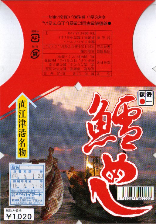 - 新潟県 信越本線 新津駅「えんがわ押し寿司」(1,050円)※神尾商事