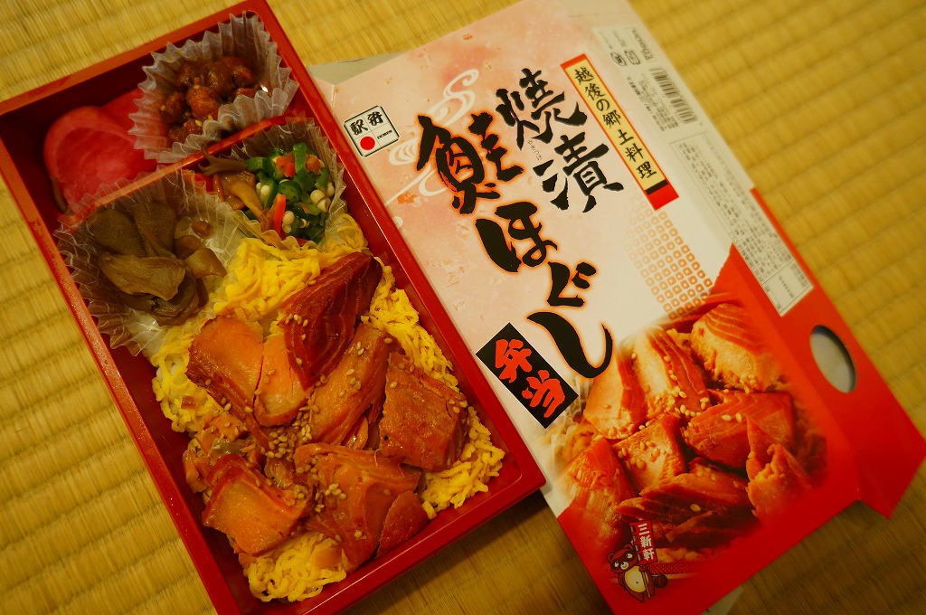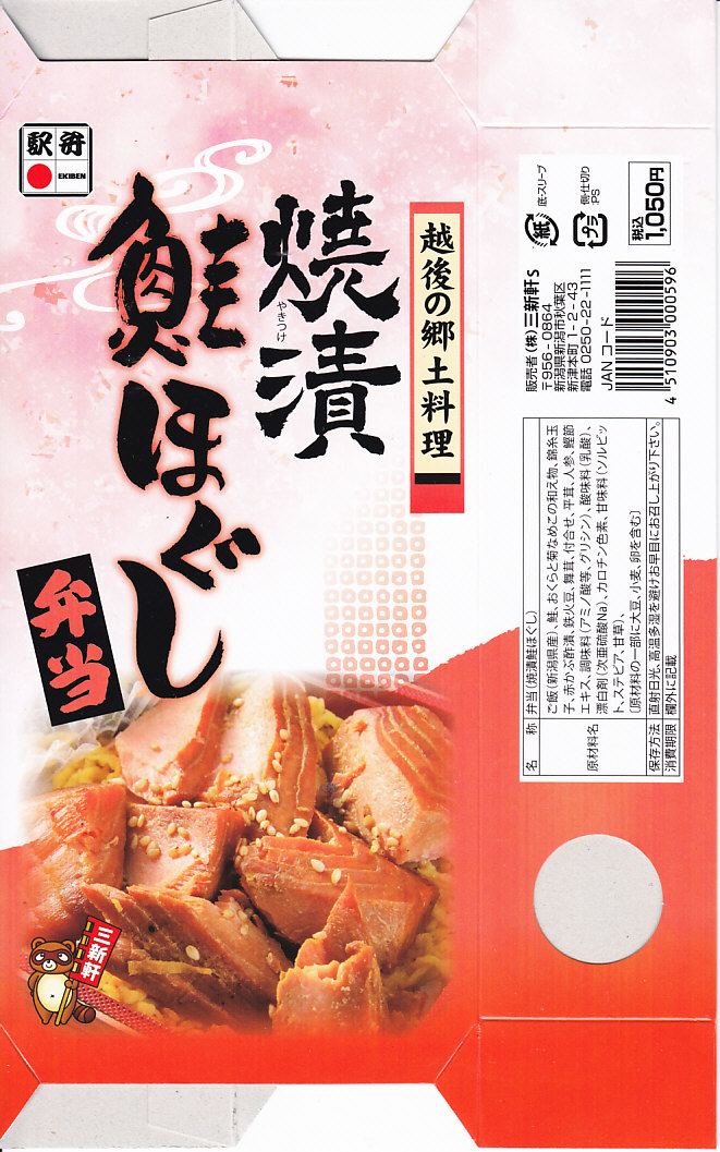 - 新潟県 信越本線 新潟駅「焼漬鮭ほぐし弁当」(1,080円)※三新軒