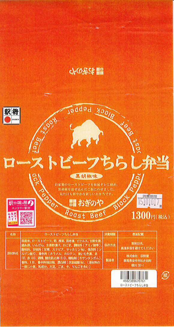 - 群馬県 高崎線 高崎駅「ローストビーフちらし弁当ブラックペッパー味」(1,300円)※荻野屋 ※新作