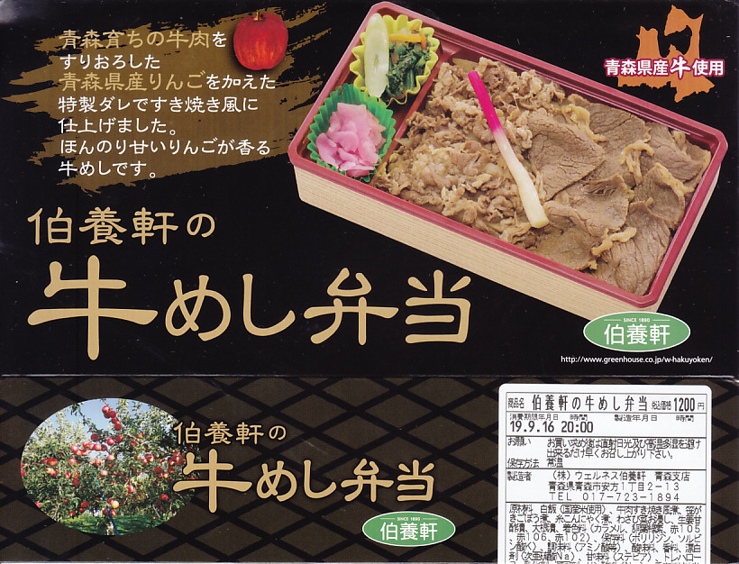 - 青森県 東北本線 青森駅「伯養軒の牛めし弁当」(1,150円)※ウェルネス伯養軒青森支店