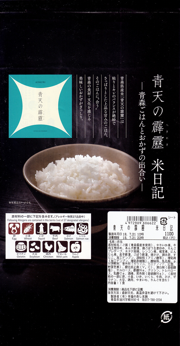 - 青森県 東北新幹線 新青森駅「青天の霹靂米日記」(1,100円)※幸福の寿し本舗 ※新作駅弁