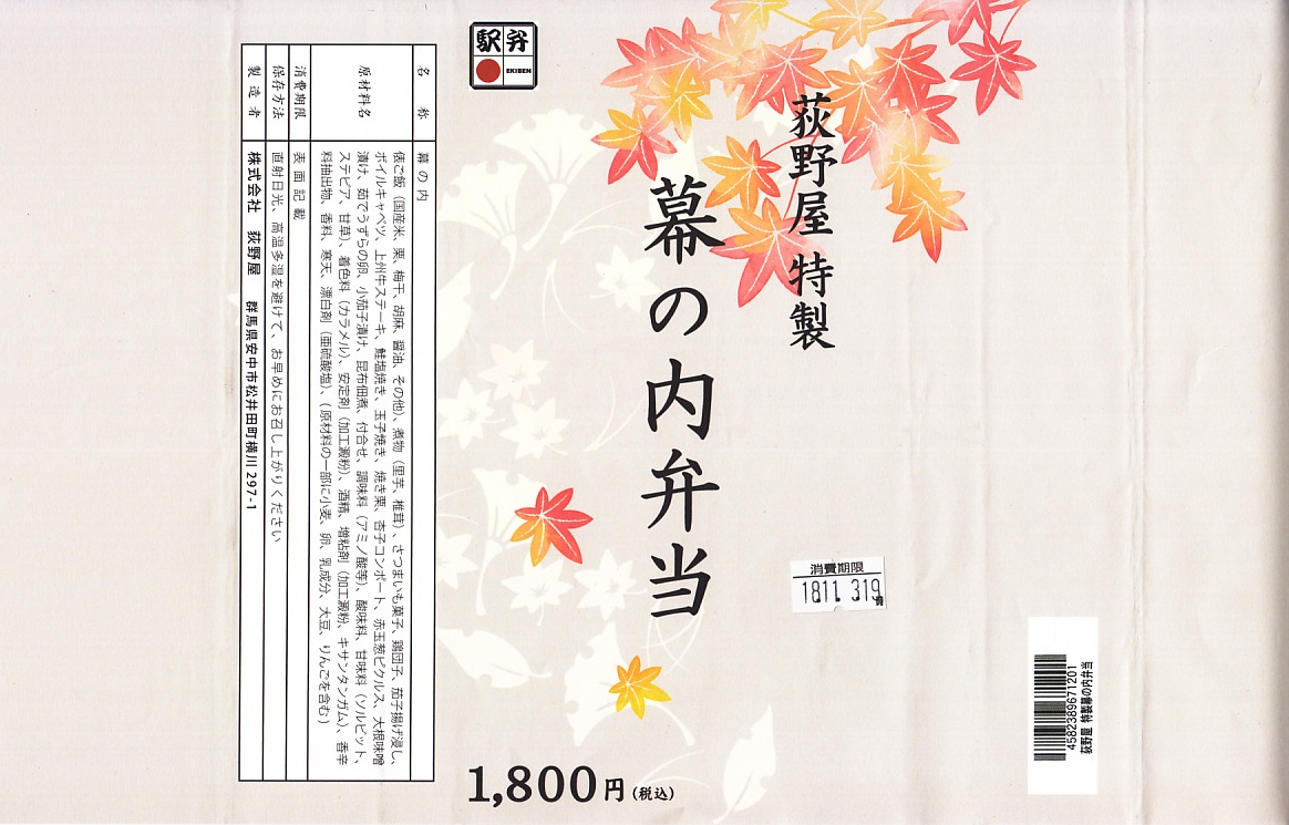 - 群馬県 信越本線 横川駅「荻野屋特製幕の内弁当」(1,800円)※荻野屋 ※新作駅弁 注:高崎駅と軽井沢駅で販売