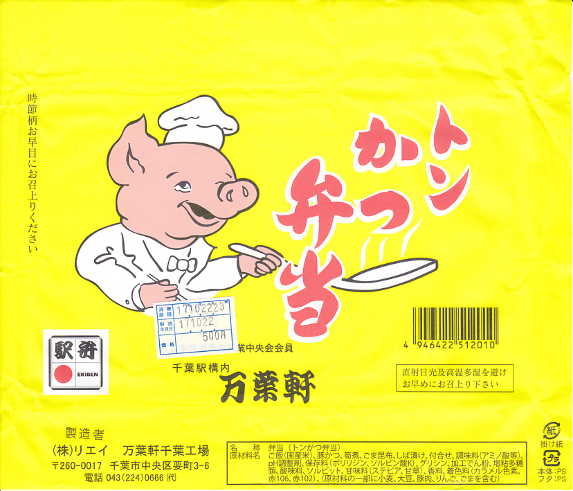 - 千葉県 総武本線 千葉駅「トンかつ弁当」(500円)※リエイ万葉軒千葉工場