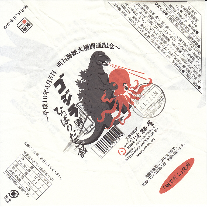 - 兵庫県 山陽本線 西明石駅「ゴジラ対ひっぱりだこ飯」(1,300円)※淡路屋