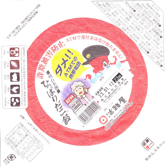 - 「駅弁おにぎりひっぱりだこ飯」(240円)※淡路屋