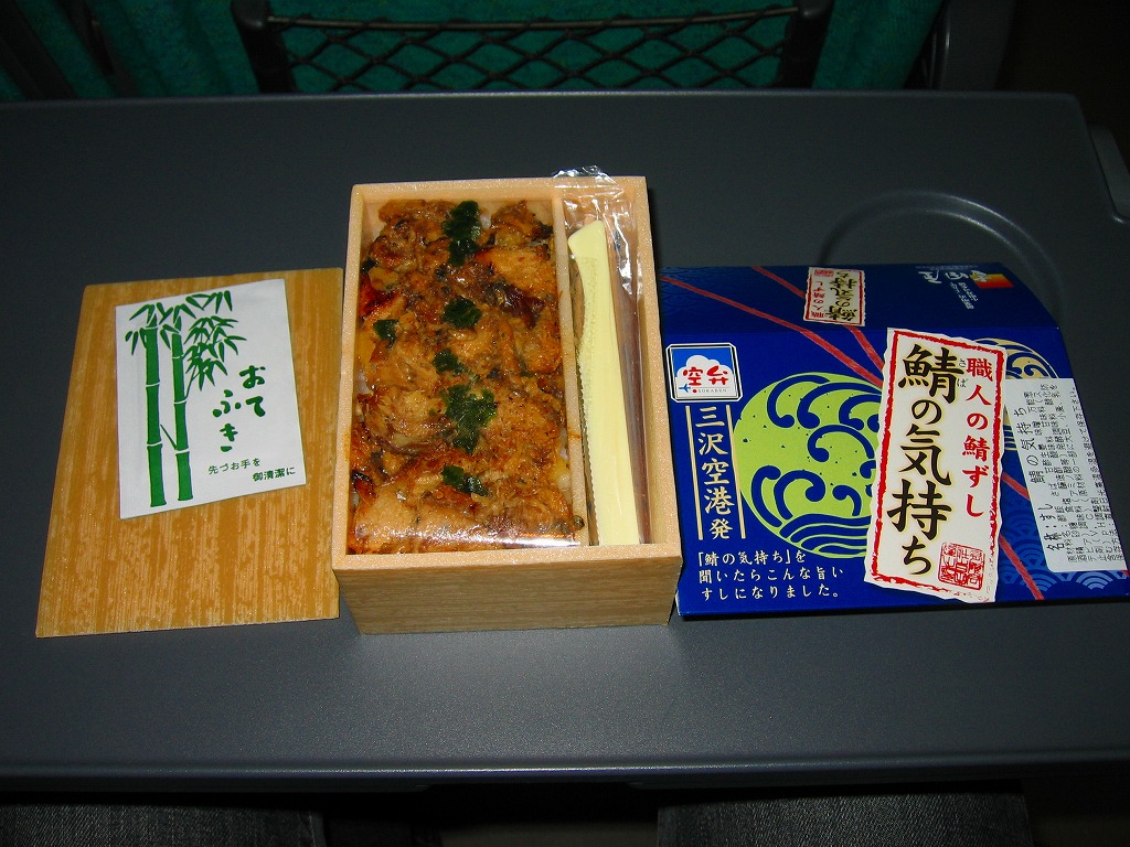 2007年2月に三沢空港と全国の駅弁空弁催事でデビュー。12センチ×8センチととても小さい発泡材容器は、さらにその1/4が箸置き場になっていて内容量は少ない。これを商品名や空港名や催事屋製空弁マークなどの宣伝が華やかなボール紙の枠にはめる。中身は焼きサバほぐし身丼で、風味はA級なジャンクフード。自身の身をぐちゃぐちゃにされた鯖の気持ちはいかに。 【三沢空港】1941(昭和16)年開港 青森県三沢市大字三沢字下沢 http://www.misawa-airport.co.jp/ 【有限会社吉田屋】青森県八戸市一番町一丁目2−1 0178(27)4554 http://koutazushi.com/ Copyright (C) 2006-2022 まっこうくじら |