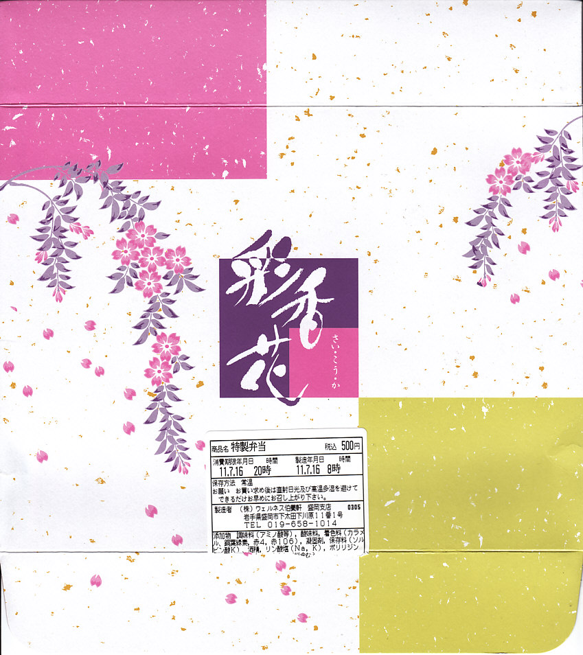 特製弁当(500円) 2011年7月16日に花巻空港旅客ターミナルビル1階売店「hana AIRPORT SHOP&CAFE」で購入