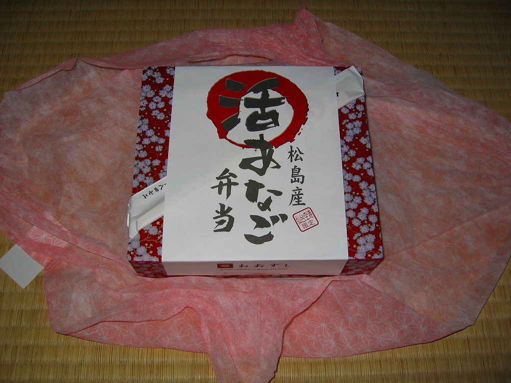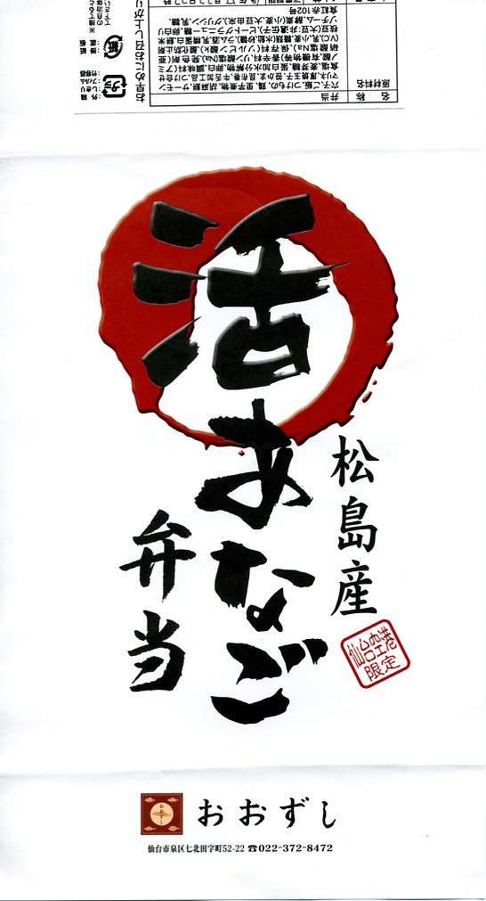 空弁ブームに乗じて催事場や羽田空港で頑張ったらしい「伊達なソフト押し寿司」シリーズの現況か。シソ入り酢飯に生姜とサバと透明な昆布を合わせた、焼かない小さな鯖棒寿司が1本、笹の葉とビニールに包み、真っ黒で細長い発泡材容器にぴったり詰め、黒いボール紙箱に入れて、商品名などを書いた白い掛紙に包む。 遠隔地での輸送販売のためか、酢が変に強く利いており、魚に存在感がなかった。調製元は経営不振により「新宿さぼてん」のグリーンハウスフーズに買われた、JR仙台駅など東北一円の駅で売店や食堂を構えた駅弁屋であるが、本商品の製造者がJR南仙台駅近くのマンションの1室であることは気になる。 太平洋から約1km内陸に位置する仙台空港は、2011年3月11日の東日本大震災により、地震の発生の約1時間後に高さ約6メートルの津波に洗われた。ガレキ混じりの海水が襲来し滑走路を覆う衝撃的な映像がいち早く配信されている。 しかし、たまたま定期旅客便や列車の運行がないタイミングであったことと、地盤の液状化対策を行っていたことで、人や施設の被害に関する報道はほとんど見られなかった。しかし少なくとも旅客ターミナルビルの1階では犠牲者が出ているほか、約1,300人が電気も水もなく暖房が切れたビル内で一夜を明かしたという。 【仙台空港】1940(昭和15)年開港 宮城県名取市下増田字南原 http://www.sdj-airport.com/ 【株式会社ウェルネス伯養軒】宮城県仙台市太白区西中田3−1−11−403 022(382)8942 http://www.greenhouse.co.jp/w-hakuyoken/ 活あなご弁当(1,600円) 2007年7月22日に仙台空港ターミナルビル観光売店で購入