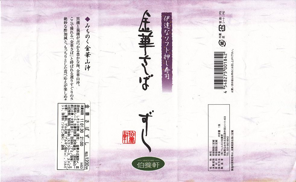 金華鯖寿司(1,200円) 2011年1月30日に阪神百貨店駅弁大会で購入