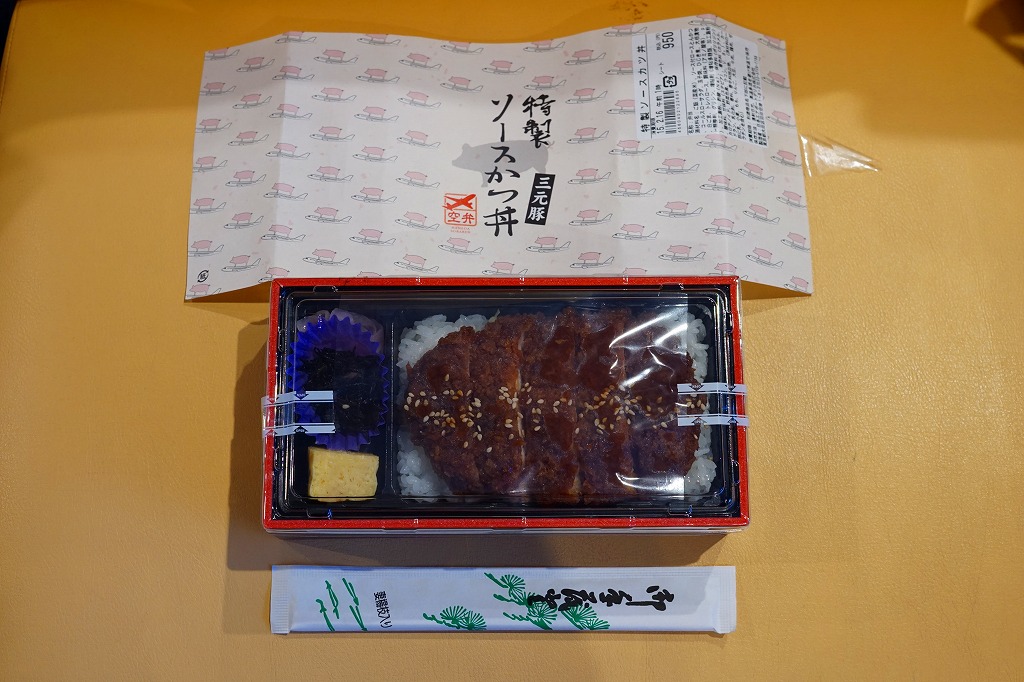 特製ソースかつ丼(1,000円) 2021年3月12日に羽田空港の第1旅客ターミナル搭乗待合室の売店で購入