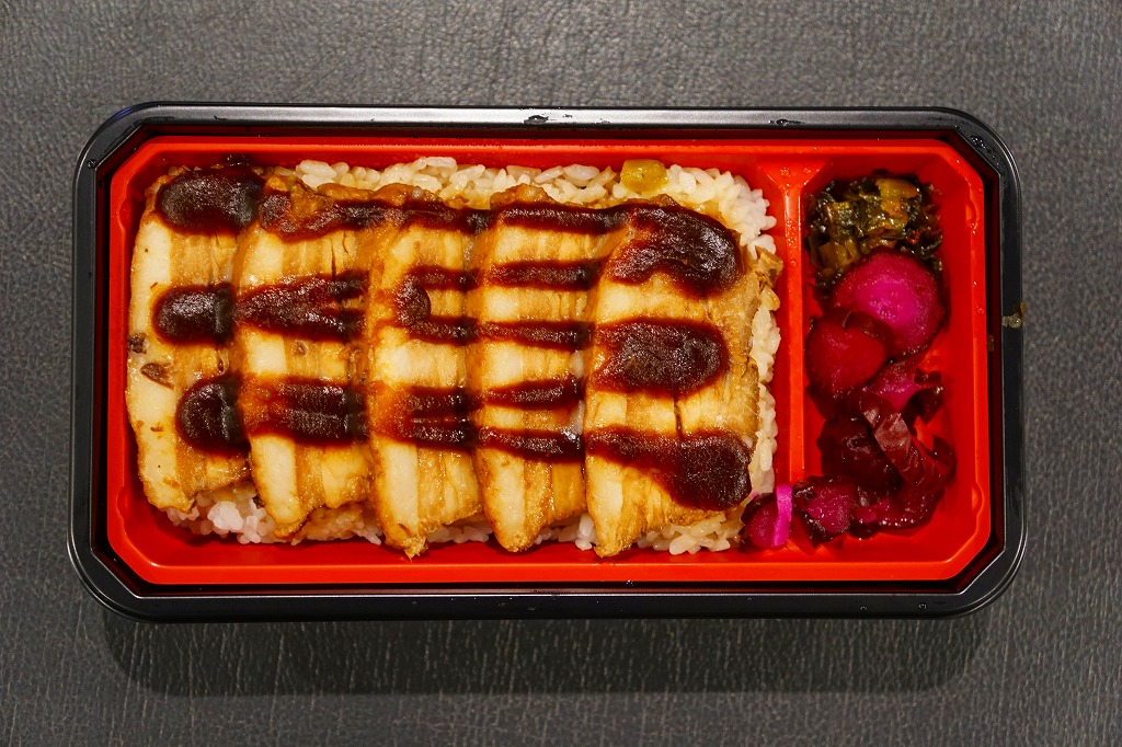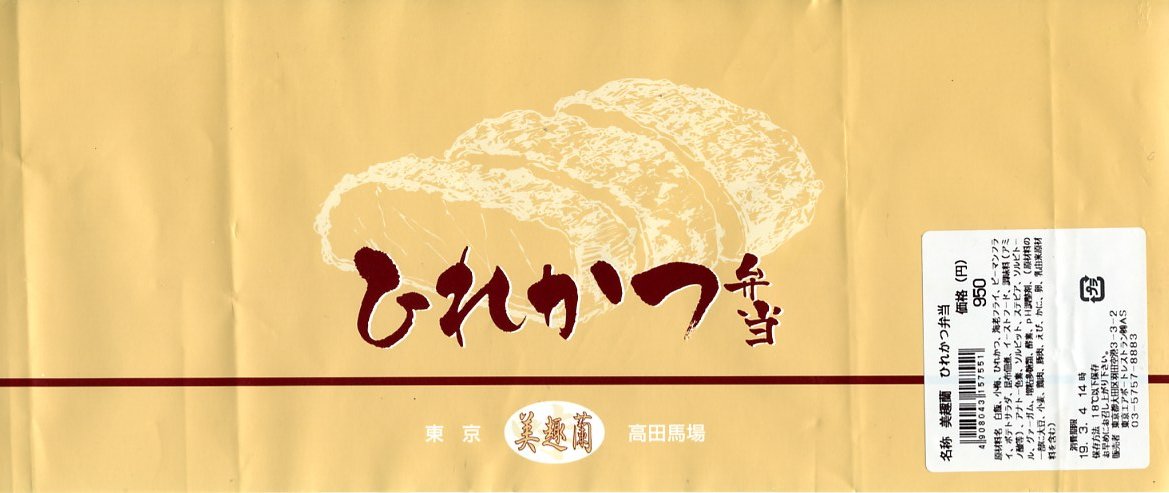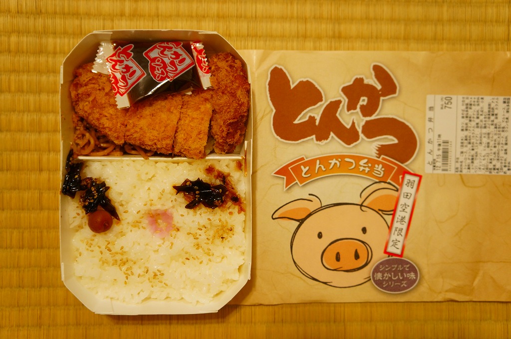 2015年の1月までに発売か。白御飯を真っ黒なソース付ロースとんかつで覆い、ひじき、玉子焼、漬物を添えるシンプルな内容。まるで食品サンプルのようなかっちりした形状と 崩れないのに固くない食感を持つ、整然なるカツ丼。 【東京国際空港】1931(昭和6)年8月25日開港 東京都大田区羽田空港 http://www.tokyo-airport-bldg.co.jp/ 【日本エアポートデリカ株式会社】東京都大田区羽田空港1−8−2 03(5708)7788 http://www.airdeli.co.jp/ とんかつ とんかつ弁当(750円) 2012年7月15日に羽田空港第2旅客ターミナル売店で購入