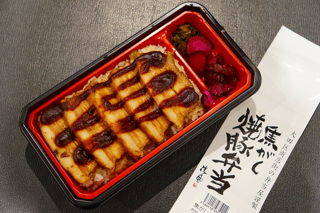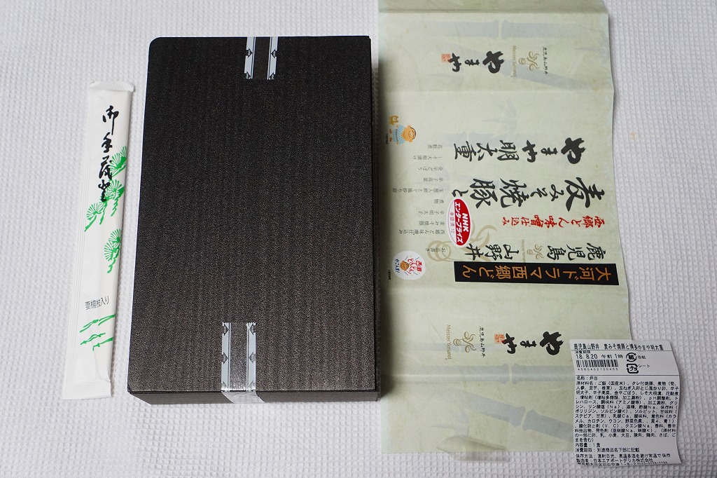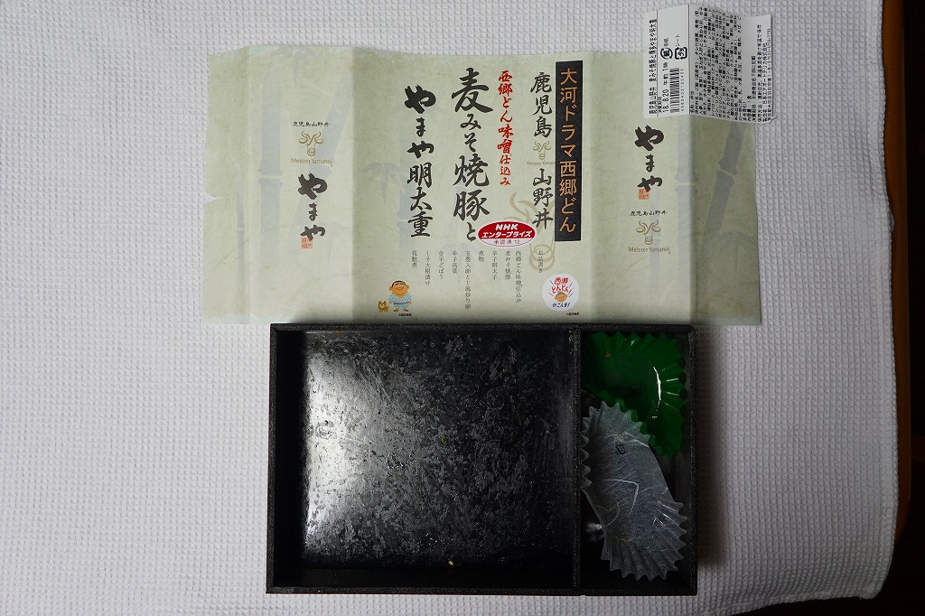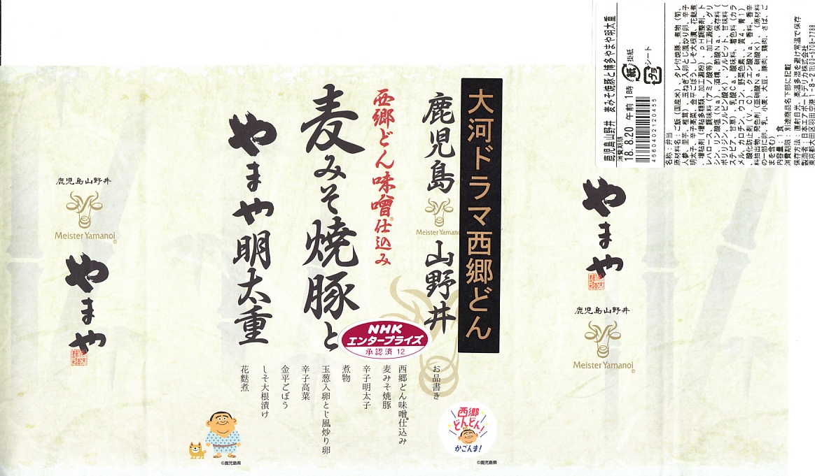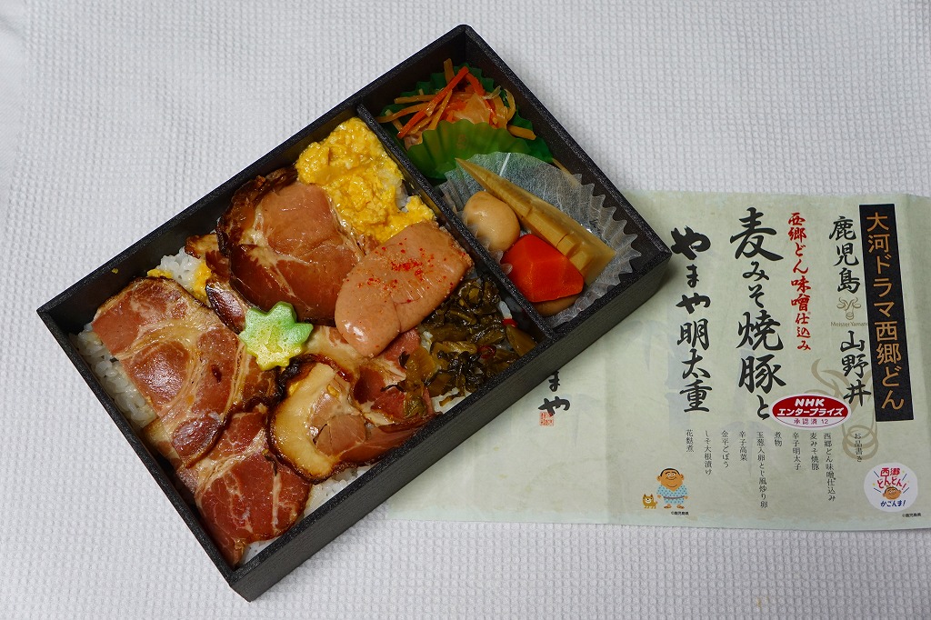 2017年の末頃に発売。デパ地下で購入。製造者が日本エアポートデリカなので、羽田空港の空弁の新作かと思ったら、主に東京都内の百貨店や商業施設でチェーン展開する高級スーパー「ザ・ガーデン自由が丘」専用商品として2018年8月に登場したことになっている。時空がゆがんでいる。 「大河ドラマ西郷どん 鹿児島 山野井 西郷どん味噌仕込み 麦みそ焼豚と やまや明太重」と掛紙に書き、NHKエンタープライズ承認済のシールを貼る。中身は白飯を焼豚と卵とじと明太子と辛子高菜で覆い、煮物ときんぴらごぼうを添えるもの。デパ地下弁当にしては高級感。見た目がハムで食感はベーコンの、カリカリの焼豚が飯を旨くする。 【東京国際空港】1931(昭和6)年8月25日開港 東京都大田区羽田空港 http://www.tokyo-airport-bldg.co.jp/ 【日本エアポートデリカ株式会社】東京都大田区羽田空港1−8−2 03(5708)7788 http://www.airdeli.co.jp/ 焦がし焼豚弁当(790円) 2017年3月3日に羽田空港第2旅客ターミナル売店で購入