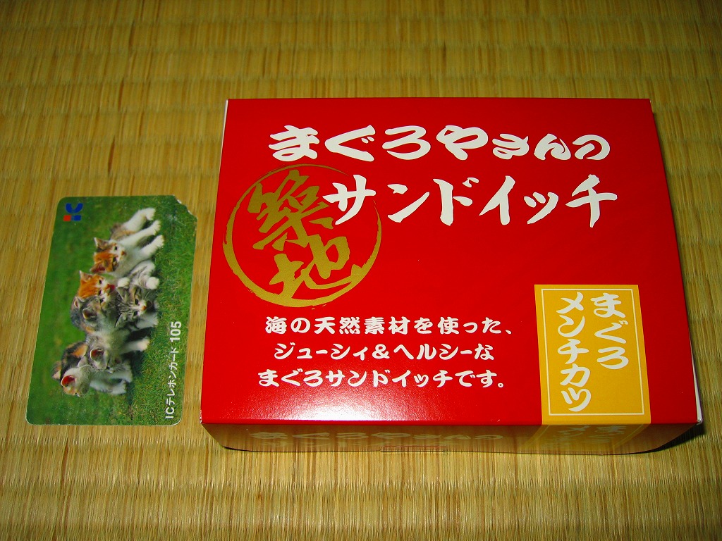 真っ白な小さい紙箱を簡単な掛紙で包みテープで留める。中身は商品名どおりの、まぐろのメンチかつサンドが3切れ入る。風味は魚というより安いハンバーグかきめ細かな豚メンチカツかといった感じで、例えば魚嫌いなお子様でも大丈夫そう。前年には中身が同じで箱が異なる「築地まぐろやさんのかつサンド」があったらしいが、これとそれが同一商品かは分からない。 【東京国際空港】1931(昭和6)年8月25日開港 東京都大田区羽田空港 http://www.tokyo-airport-bldg.co.jp/ 【株式会社エス・アイ・ティ・インターナショナル】所在地や連絡先の記載なし 【株式会社マリンプロダクツ】東京都江東区東雲2−3−12 03(3529)1360 http://www.marine-prd.co.jp/ Copyright (C) 2006-2022 まっこうくじら |