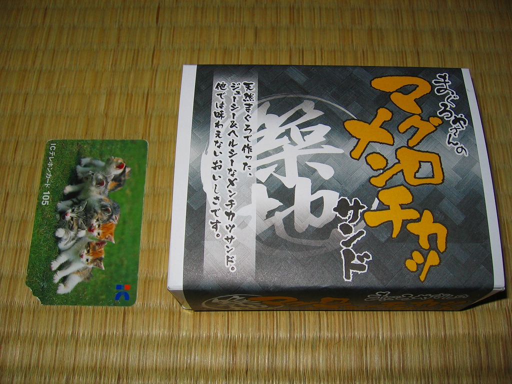 2006年4月5日に買った「まぐろのメンチかつサンド」と同じものだと思う。中身と風味は同一で、紙箱の絵柄と空弁名が変わり、販売者の名前とバーコードが消え、築地の名とJALの空弁マークが付いた。このほうが商品としての見栄えがする。 【東京国際空港】1931(昭和6)年8月25日開港 東京都大田区羽田空港 http://www.tokyo-airport-bldg.co.jp/ 【株式会社マリンプロダクツ】東京都江東区東雲2−3−12 03(3529)1360 http://www.marine-prd.co.jp/ まぐろのメンチかつサンド(680円?) 2006年4月5日に羽田空港第1旅客ターミナル空弁売り場で購入