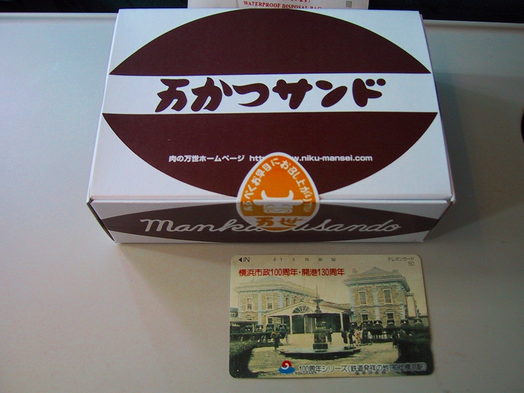 商品そのものは1957(昭和32)年頃登場。羽田空港の搭乗口脇の売店でも販売されている、東京の秋葉原にほど近い神田・万世橋のほとりの肉料理レストラン「万世」のカツサンド。中身は正方形のロースカツサンドが6個入るもので、味はなかなか、価格はそこそこ。購入時点で480円だったような気がするが、2004年夏時点での価格は間違いなく600円。 【東京国際空港】1931(昭和6)年8月25日開港 東京都大田区羽田空港 http://www.tokyo-airport-bldg.co.jp/ 【株式会社万世】東京都千代田区神田須田町2−21 03(3251)0291 http://www.niku-mansei.com/ Copyright (C) 2006-2022 まっこうくじら |