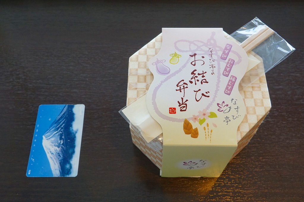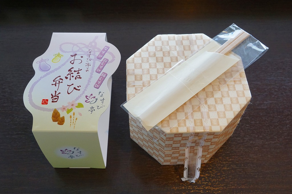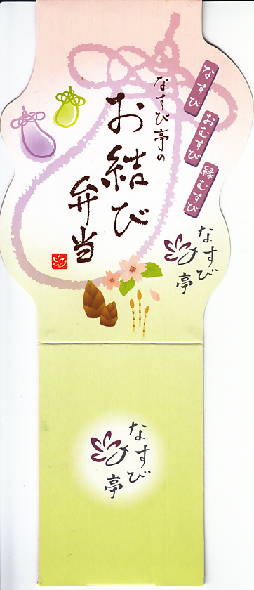 2019年の発売か。羽田空港に乗り入れる京浜急行電鉄の電車を模したうえで、同社のキャラクター「けいきゅん」を描く紙箱に、小さなプラ製の食品トレーを重ねる。中身はミニミニサイズの型押しおむすび3個、ハンバーグ、鶏唐揚、ポテトサラダ、オムレツなどのお子様ランチ。 【東京国際空港】1931(昭和6)年8月25日開港 東京都大田区羽田空港 http://www.tokyo-airport-bldg.co.jp/ 【日本エアポートデリカ株式会社】東京都大田区羽田空港1−8−2 03(5708)7788 http://www.airdeli.co.jp/ なすび亭のお結び弁当(1,188円) 2018年3月24日に羽田空港第1旅客ターミナルビルの売店で購入