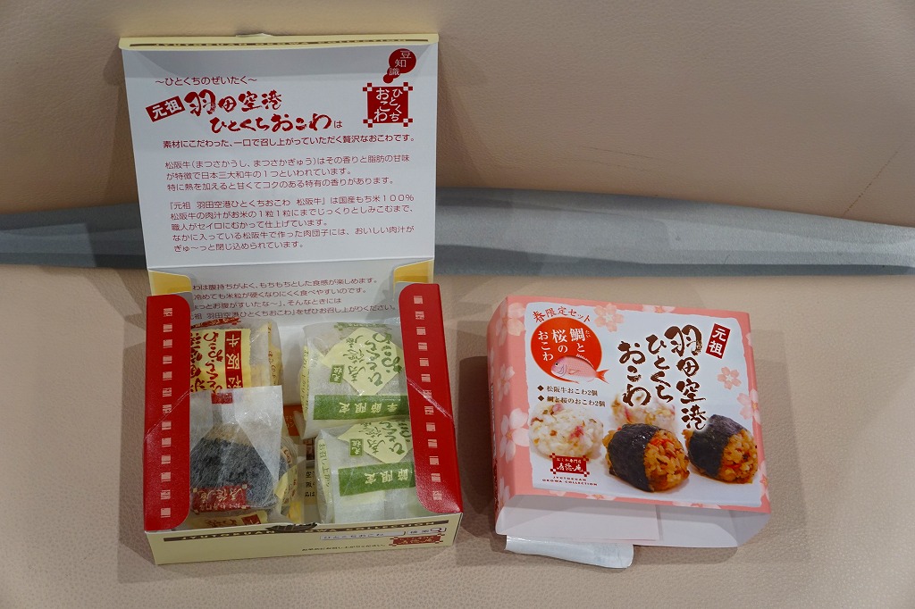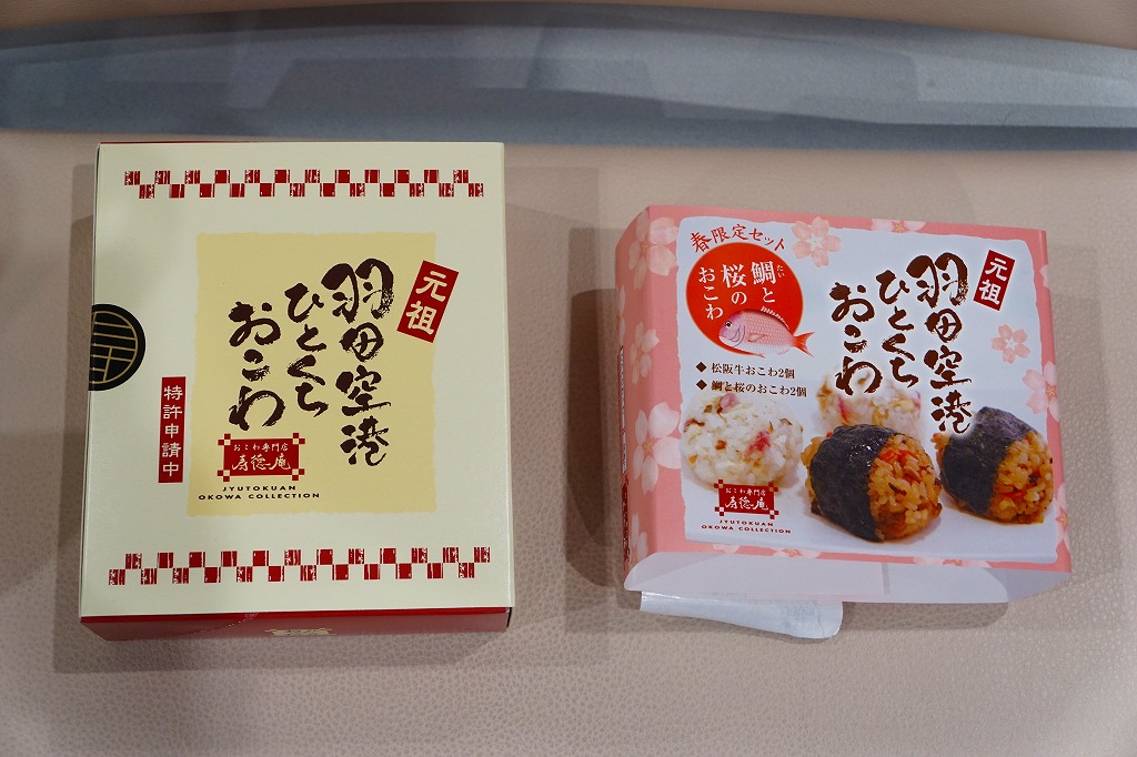元祖羽田空港ひとくちおこわ 春限定セット鯛と桜のおこわ(720円) 2016年3月25日に羽田空港第1ターミナル売店「空弁工房」で購入