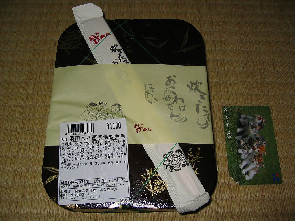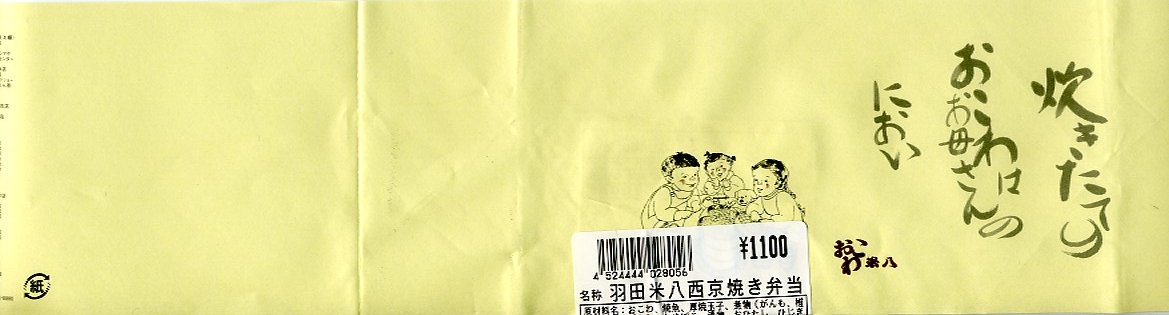 2006年初頭に東京駅と羽田空港へ投入された模様。中身はおこわの上に松阪牛そぼろと薄焼き肉1枚を載せるもの。硬い御飯と牛肉の組み合わせのミスマッチと、風味も柔らかさもなく松阪牛であることを疑いそうな少量な牛すき焼き肉と牛そぼろ。東京広尾の廣尾瓢月堂が主に羽田空港で手掛けるおこわ専門店のブランドネームが泣きそうな商品だった。 ※2007年5月補訂:空弁屋URLの変更を反映 【東京国際空港】1931(昭和6)年8月25日開港 東京都大田区羽田空港 http://www.tokyo-airport-bldg.co.jp/ 【株式会社 寿徳庵 大森工場】東京都大田区大森東4−2−9 0120-55-1800 http://www.jutokuan.com/ 羽田米八西京焼き弁当(1,100円) 2005年7月2日に羽田空港第2旅客ターミナルビル空弁工房で購入