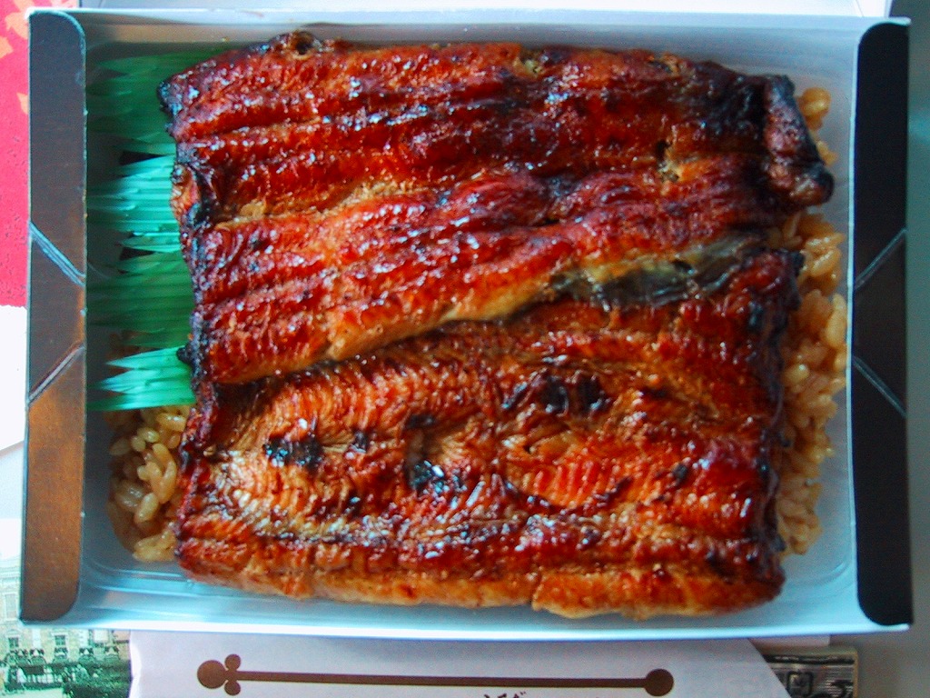 羽田空港の搭乗口脇の売店で販売されている、東京築地の鰻専門商社の鰻弁当。トレーを入れた黒塗りのボール紙製容器に掛紙をかける。中身は色飯を覆うように、静岡県榛原郡吉田町南アルプスの天然地下湧水で育てたという鰻の蒲焼が2切れ載っただけのシンプルなもので、浜松や豊橋の鰻駅弁に匹敵する美味さ。 【東京国際空港】1931(昭和6)年8月25日開港 東京都大田区羽田空港 http://www.tokyo-airport-bldg.co.jp/ 【榛原鰻販売株式会社】東京都中央区勝どき3−3−20 03(3531)7241 http://www.rakuten.co.jp/haibara/ Copyright (C) 2006-2022 まっこうくじら |