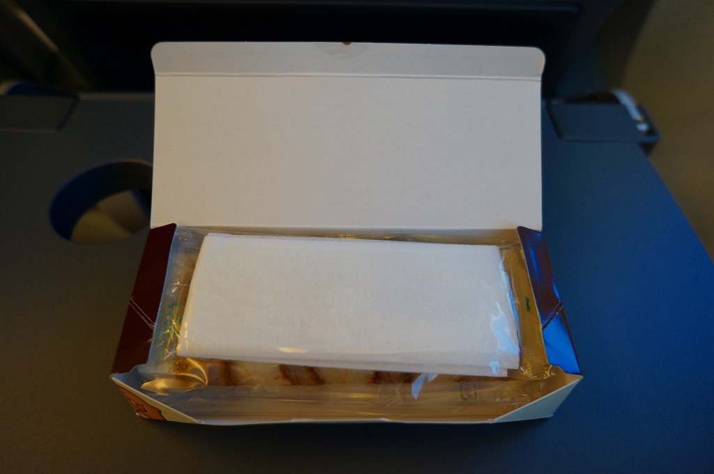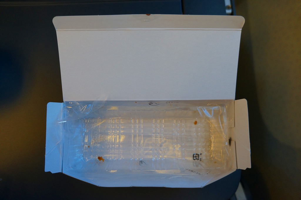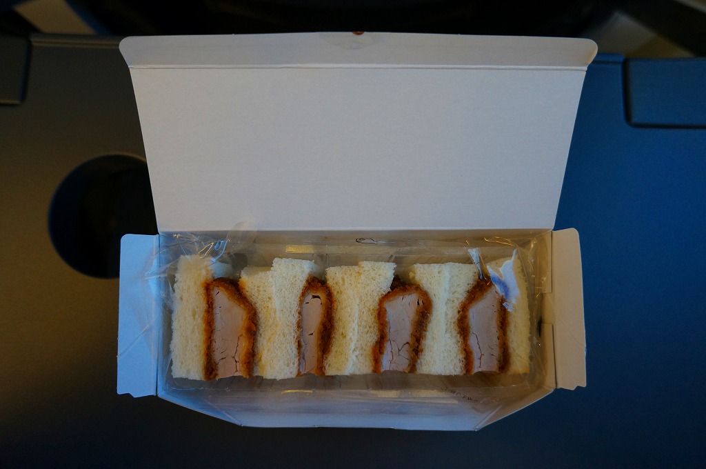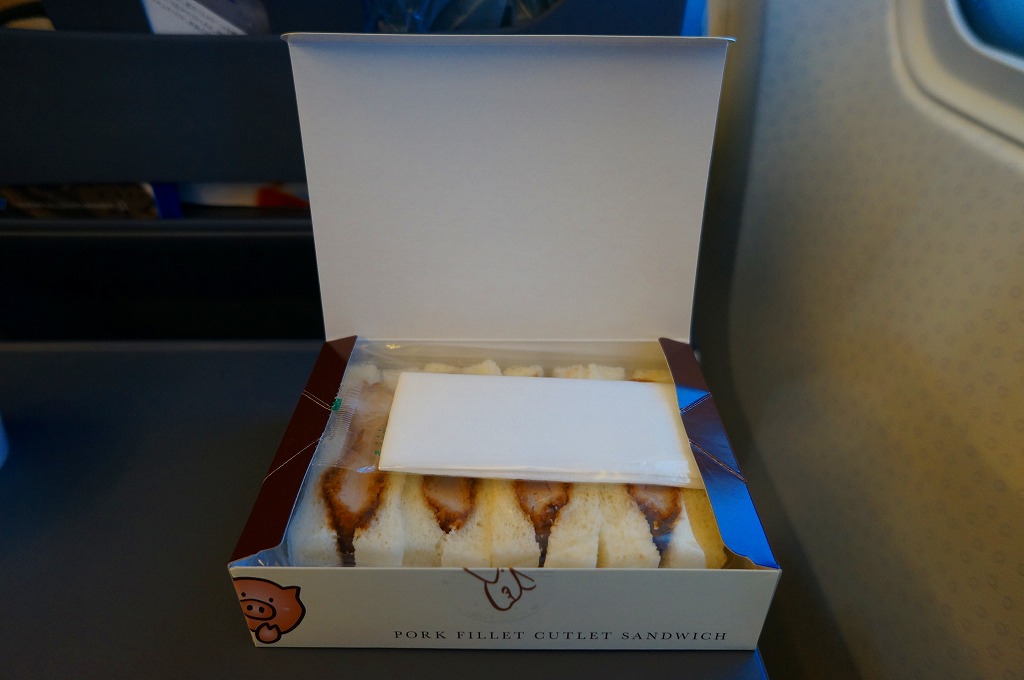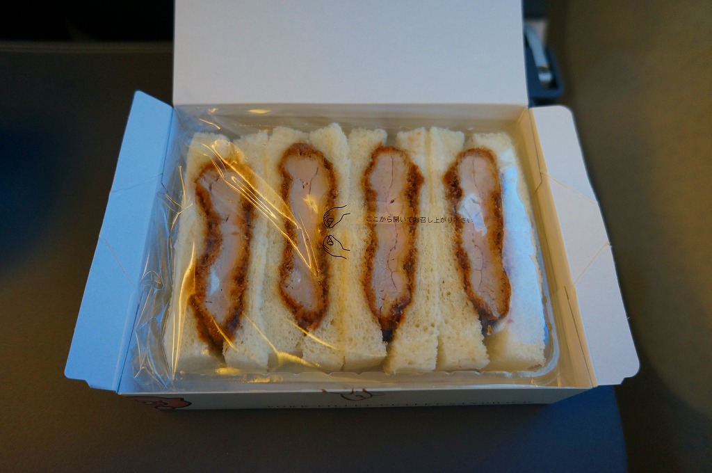 和幸ブランドのひれかつサンドの2011年10月時点での姿。空弁を思わせるものはふたを留める飛行機マークのシールだけだが、この強度と粘着力が強力であり、ふたを開けるのに四苦八苦。2005年には3切れで500円であったものが、2008年には4切れで560円、そして今回は分量据え置きで630円と、順調に値上げされている。 【東京国際空港】1931(昭和6)年8月25日開港 東京都大田区羽田空港 http://www.tokyo-airport-bldg.co.jp/ 【和幸商事株式会社WAS】神奈川県川崎市川崎区駅前本町26番地1 0120-44-0515 http://www.wako-group.co.jp/ ひれかつサンド ハーフサイズ(330円) 2011年10月1日に羽田空港第2旅客ターミナル搭乗待合室売店で購入