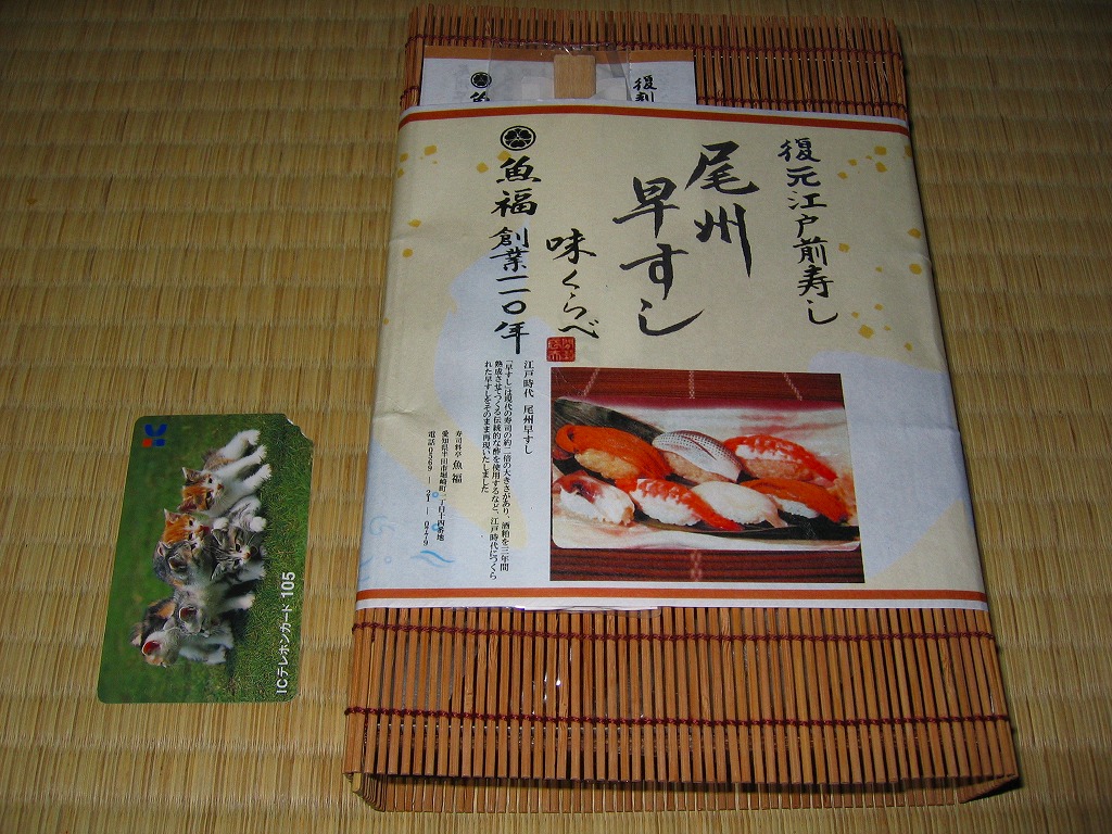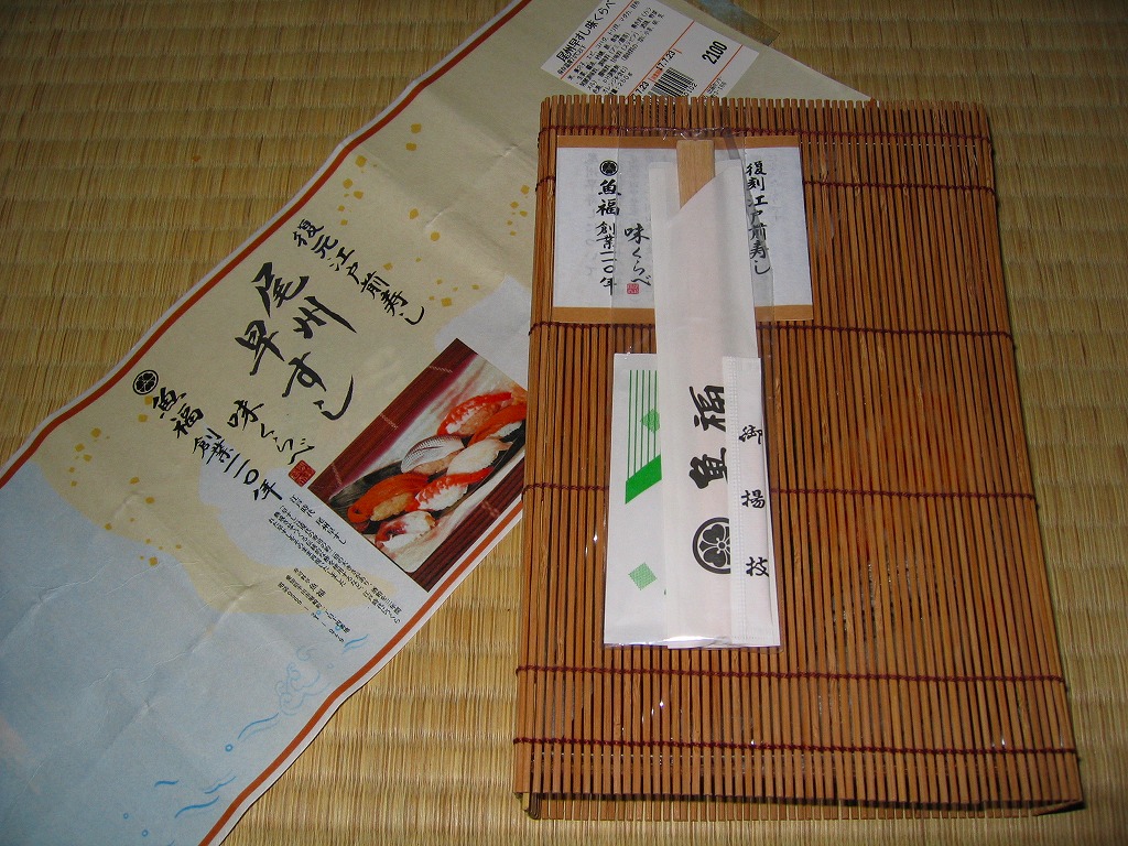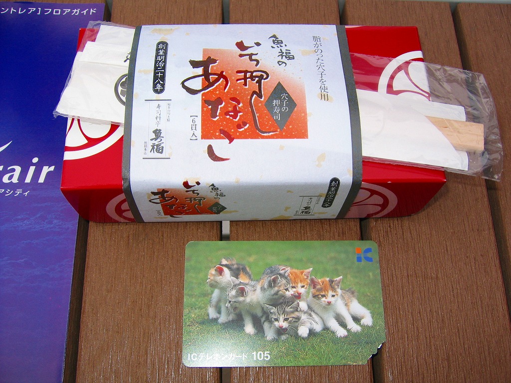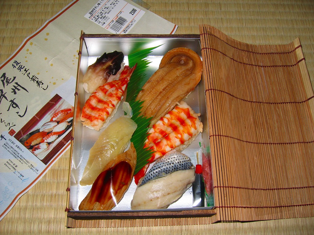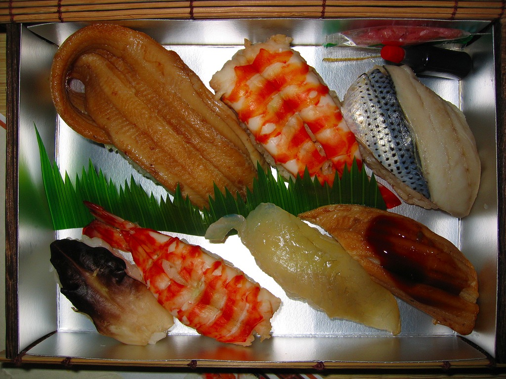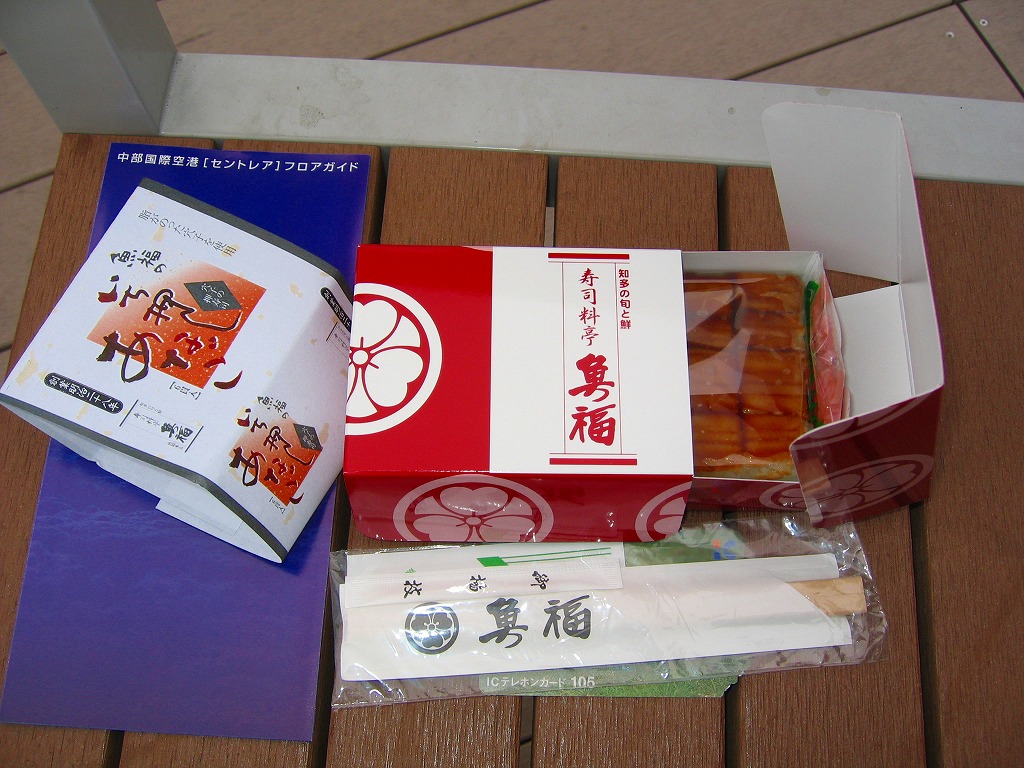 2005年2月の中部国際空港開港と同時に空弁デビューした、愛知県半田市の食堂や仕出しの業者の穴子寿司。上にも中にも穴子を詰めた小さなバッテラを6切れにカットしてボール紙箱に詰め、割箸ごと掛紙で巻く。8切れなら千円。高価少量で味は良く、コンパクトなのは空弁らしいが、粘性の高いタレの分量は半端でなく、機内で食べたら機内整備の係員に迷惑がかかると思うから、持ち帰り弁当か土産物としての利用が適しているか。 中部国際空港は、1996年12月に閣議決定された第7次空港整備五箇年計画で事実上事業がスタート、1998年4月の法令施行、同年5月の会社設立、2000年4月の運輸省許可、同年6月の埋立許可、同年8月の着工、2002年1月の施設着工などの経緯を経て、大規模公共事業としては奇跡的に、当初計画の開港予定時期に間に合うと共に、想定を下回る事業費で完成した。 空港会社の社長がトヨタ自動車から送り込まれるなど、官僚ではなく民間、というよりトヨタの支配による事業遂行がその成功の要因だとされるが、愛知万博のような国家的イベントに間に合わせたり、物価下落の影響で事業費が安くなった事例は、官の支配の大規模公共事業でも珍しくない。官より民が優秀だとの意見の多くは、法令の趣旨を遵守する立場と、法令に書いてなければなんでもやっていい立場の違いで説明できると思う。 【中部国際空港】2005(平成17)年2月17日開港 愛知県常滑市セントレア1−1 http://www.centrair.jp/ 【合資会社魚福本店出前センター】愛知県半田市住吉町3−166 連絡先の記載なし 尾州早すし味くらべ(2,100円) 2005年7月23日に中部国際空港搭乗ロビー売店で購入