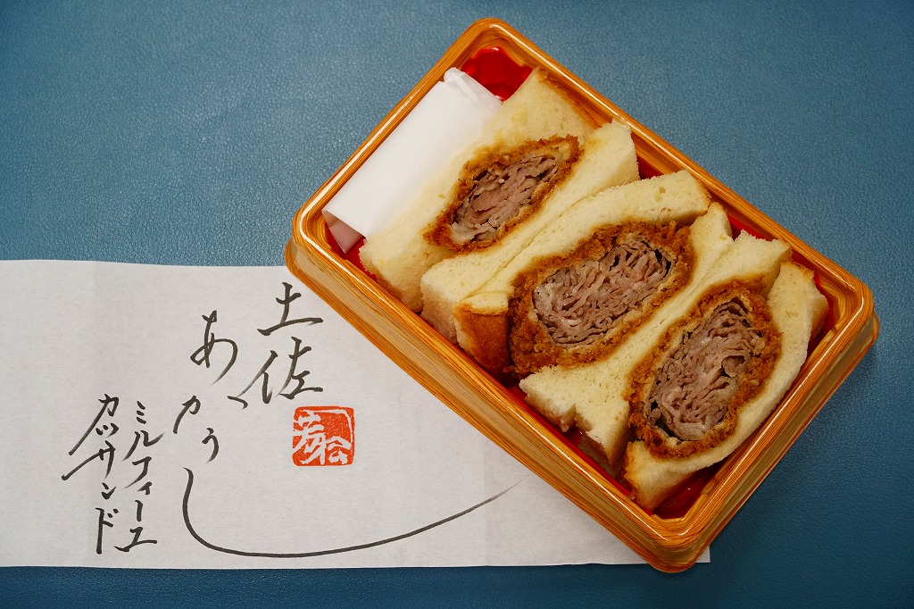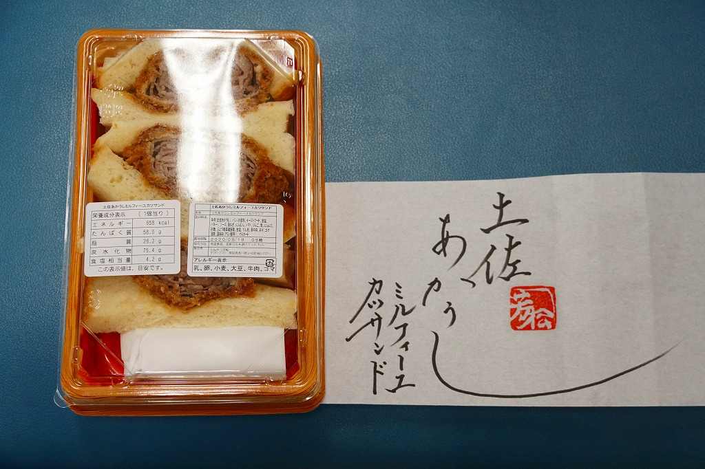 ロビー(TOP)>中国・四国の空弁>高知空港の空弁>高知空港の空弁 高知空港の空弁(3種類を収蔵) 土佐あかうしミルフィーユカツサンド(1,620円) 2020年8月16日に高知空港の搭乗待合室の売店「レインボー」で購入