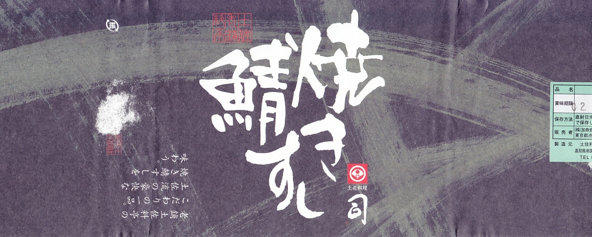 高知空港の旅客ターミナルビルに入居する土佐料理店「司」(つかさ)の店頭で売られていた土産物品。商品名のとおり、棒状の酢飯に焼サバを合わせた焼サバ寿司が1本6切れ、食品トレイに収まり、しおりと注意書きを載せ、商品名の掛紙を巻く。高価や美品で身構える土産物とな思えない、適度な価格と分量を持つ、米も魚も形の整ったお惣菜。 【高知空港】1944(昭和19)年完成または1960年4月開港 高知県南国市物部 http://www.kochiap.co.jp/ 【土佐料理「司」空港店】高知県南国市久枝(空港ビル内)088(863)5063 Copyright (C) 2006-2022 まっこうくじら |