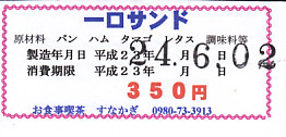 一口サンド(350円) 2012年6月2日に宮古空港搭乗待合室カフェスタンドで購入