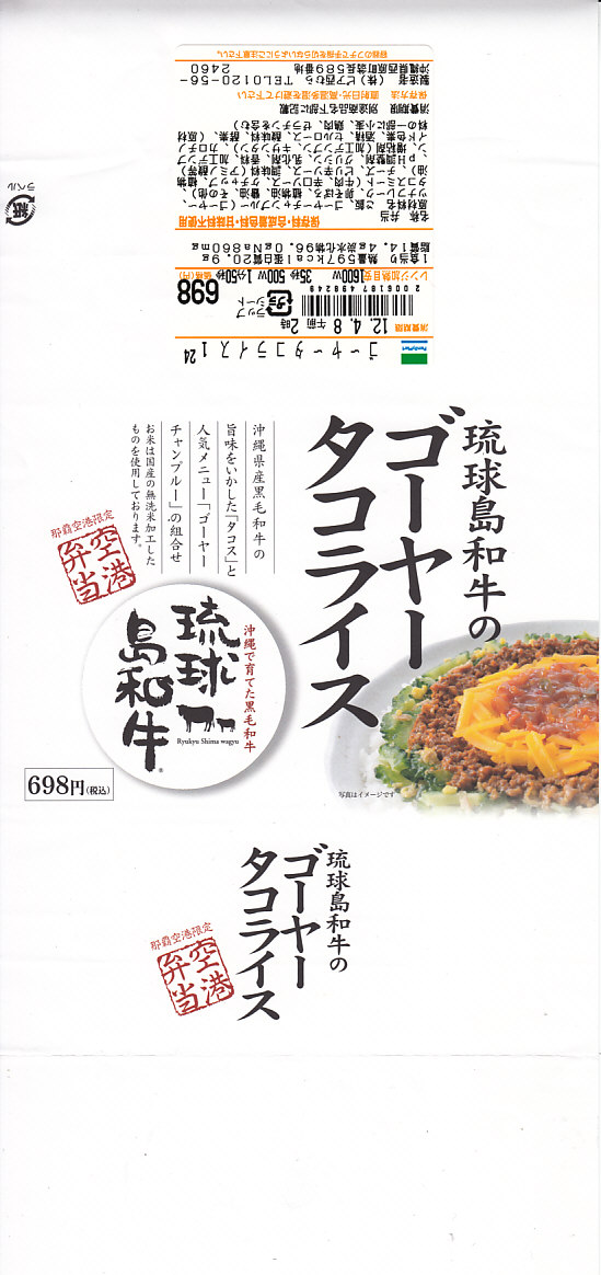 2011年7月12日に「琉球島和牛のゴーヤータコライス」「琉球島和牛のステーキ弁当」「焼鯖寿司」の3種が同時にデビューした、那覇空港のコンビニエンスストア「ファミリーマート」の空弁。手荷物検査場の外で弁当や惣菜が買える店は、ここだけだった。 コンビニ弁当向けの浅く平たい長方形のプラ製惣菜容器に御飯を敷き、刻んだゴーヤーとツナと玉子の炒め物と、タコスミートと書いてある牛そぼろの辛口ソース焼きにチーズとピリ辛ソースを振り掛けたもので覆う。つまりコンビニ弁当なのだが、味と内容と体裁はコンビニ弁当よりだいぶ高級で、空弁にしてもスマートだと思う。 琉球島和牛とは、兵庫県神戸の琉球食堂業者が商標を持つ、その子会社で那覇の食品加工業者である琉風が実施する事業で生産される、沖縄県産の黒毛和牛。沖縄で肉といえば豚肉であるが、筆頭格の石垣牛をはじめとする牛肉のブランドや生産地もそこそこ生まれているらしい。たしかに、第二次大戦後に占領軍が持ち込んだアメリカの食文化も戦後世代や観光客に親しまれているから、牛肉を出されても不思議にも不自然にも思わない。 【那覇空港】1933(昭和8)年8月開港 沖縄県那覇市字鏡水 http://www.naha-airport.co.jp/ 【株式会社ピア西むら】沖縄県西原町翁長589番地 0120-56-2460 Copyright (C) 2006-2022 まっこうくじら |