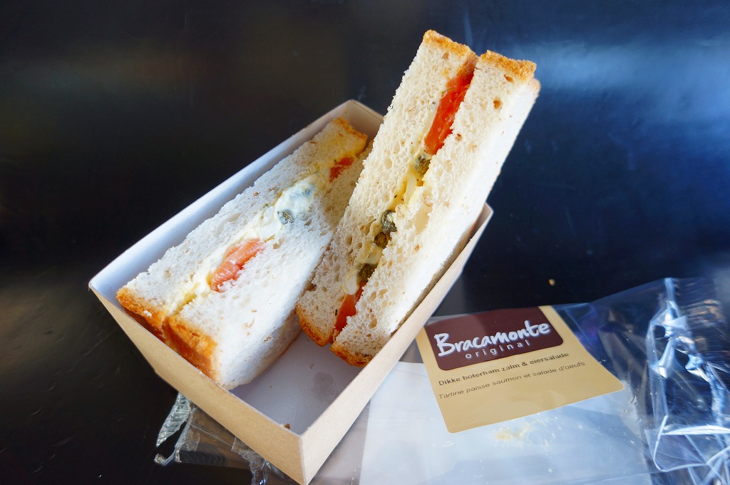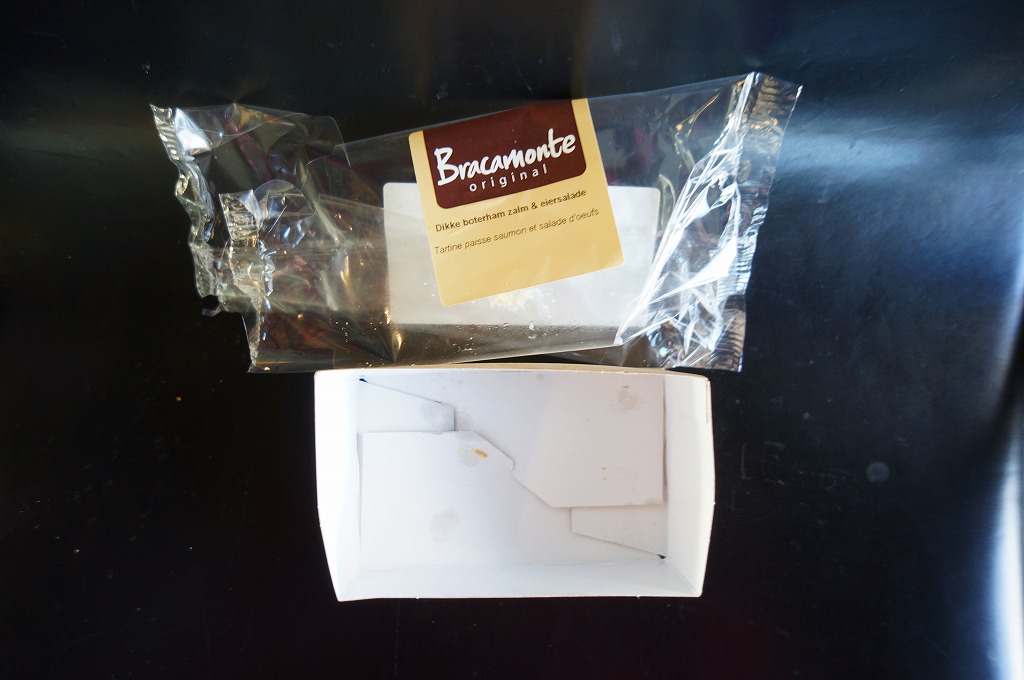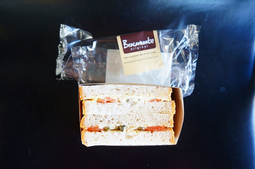 オランダのスキポール空港で売られていた箱サンド。スタンドカフェというかミニミニ版スターバックスのような店舗で、同じ価格と包装で10種類近くの商品が冷蔵棚に収められていた。商品名シールのオランダ語とフランス語によると、これは厚切りサーモンとタマゴサラダのサンドイッチ。さらに山椒の実も加えて、ヨーロッパにしてはあまり固くない、日本に比べると硬めでパサパサに思えるスライスパンに挟んでいた。 スキポール空港はオランダ国内で最大の空港であり、KLMオランダ航空の拠点であり、日本でたとえれば羽田と成田の間になる年間で5000万人もの航空旅客を集める欧州でも有数の国際空港。3つのロビーと8つのゲートは連結されており、ターミナルがひとつで済む代わりに運が悪いと乗り継ぎで片道20分くらい延々と歩かされる。青い空と青い陶器と青いKLMオランダ航空の機体が印象的だった。 【スキポール空港】http://www.schiphol.nl/ 【Bracamonte Daily Foods B.V.】http://www.bracamontesandwiches.nl/ Copyright (C) 2006-2022 まっこうくじら |